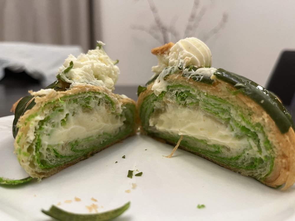Our Jalapenos, Zucchini, and Cream Cheese French Scone is a savory, buttery delight with a spicy kick from jalapenos, the freshness of zucchini, and a creamy, rich center.